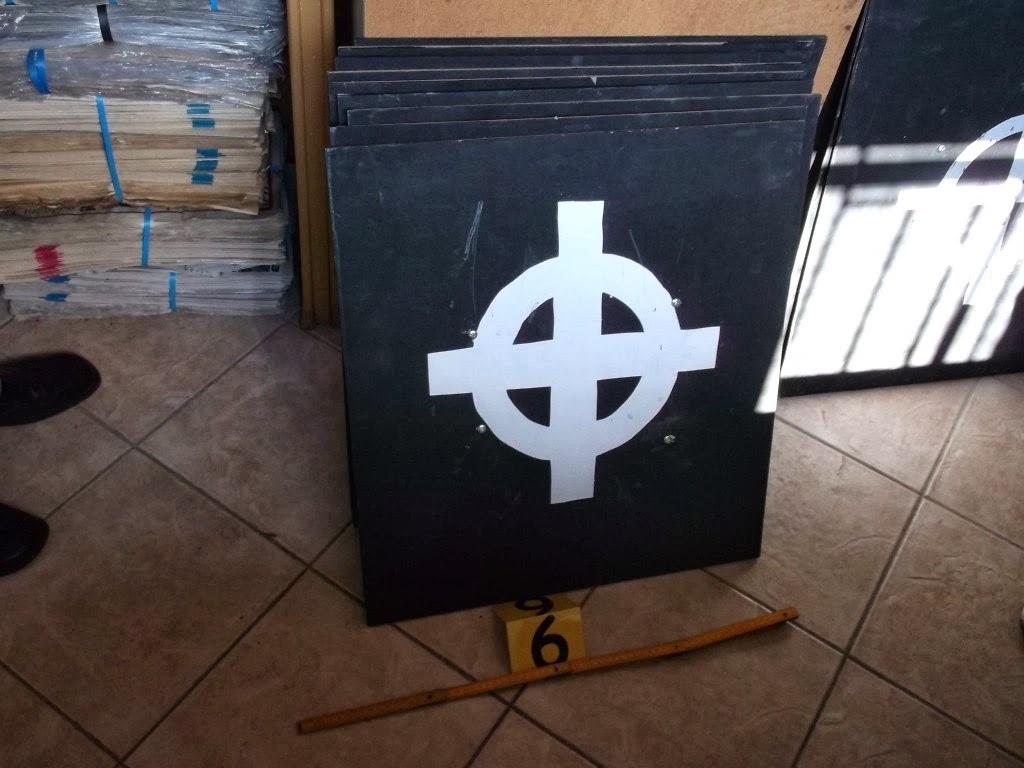 Την ώρα του ελέγχου στα γραφεία βρέθηκαν 17 φυσίγγια, κράνος, πηλήκιο και μια επικαλαμίδα της Αστυνομίας, που πιθανότατα ανήκουν στον αστυνομικό που συνελήφθη, ενώ οι άνδρες της Ασφάλειας Αγρινίου βρήκαν ακόμη δυο κράνη, ξύλινες ράβδους των 50 εκατοστών, 28 ασπίδες, κοντάρια κλπ και προχώρησαν στην κατασχεσή τους.