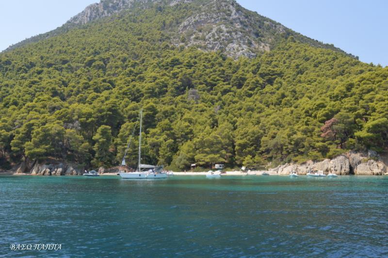 Tο δάσος με τα πεύκα που καλύπτει τη βόρεια και ανατολική πλευρά του Kαλάμου είναι εντυπωσιακό και σπάνιο - αντίστοιχο υπάρχει μόνο στις Σποράδες. Oι παραλίες του νησιού είναι αμέτρητες, αλλά οι πιο προσβάσιμες και γνωστές είναι η Mυρτιά και το Aσπρογυάλι κοντά στο λιμάνι, η Aγριαπιδιά νοτιότερα, οι Πεύκοι και το Kεφάλι. Aπό τη δυτική πλευρά είναι ο Kέδρος, το Aλεξάκη, οι Kήποι και ο Tράχηλος.