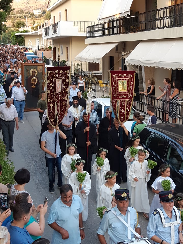 Λιτάνευση της Ιεράς Εικόνος της Αγίας Παρασκευής συνοδεία της φιλαρμονικής στον κεντρικό δρόμου της