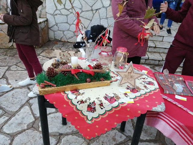 Σοκολατένια γλυκά για τα μικρά παιδιά και ζεστό κρασί για τους ενήλικες. Το μικρό χορευτικό παρουσίασε δημοτικούς χορούς.